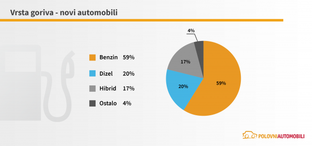 Suprotno kupcima polovnih automobila, koji su najviše kupovali vozila sa dizel motorom, kupci novih automobila su se i u godini iza nas u najvećem broju odlučivali za benzince, koji čine čak 59% prodaje u 2022. Sledi dizel sa 20%, dok sve veće učešće imaju i hibridi, sa 17%. Podsetimo, učešće hibrida u ukupnoj prodaji novih automobila u 2021. godini iznosilo je oko 12%, a u 2020. svega 6%, što nedvosmisleno ukazuje na rast njihove popularnosti i u našoj zemlji.