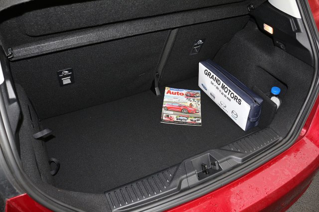 Zadnja sedišta su prilično duga, tako da, na prvi pogled, prostor za kolena deluje manji nego što zapravo jeste. Prtljažnik je takođe u proseku klase, sa praktičnim pregradama u bočnim zidovima, a rezervni točak je punih dimenzija.