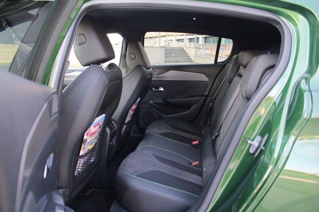 Jednostavno, Peugeot 308 nije auto koji je zamišljen da se pozadi voze krupnije odrasle osobe. Onima prosečne visine će biti taman, sa oko dva prsta prostora za kolena i tri prsta za glavu.