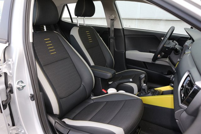 Unutra ima više boje, više stakla, pa kabina deluje dosta prozračno i prostrano. Plastika je kvalitetna i, uglavnom, tvrda što govori da je ipak reč o automobilskom B segmentu. Ništa ne škripi, ništa ne krcka.