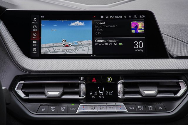 Tu su veliki displeji; instrumenti imaju sličnu grafiku kao i u ostalim BMW modelima, dok na centralnom uočavamo veliku novinu preuzetu sa najnovijih većih modela – asistenta za isparkiravanje.