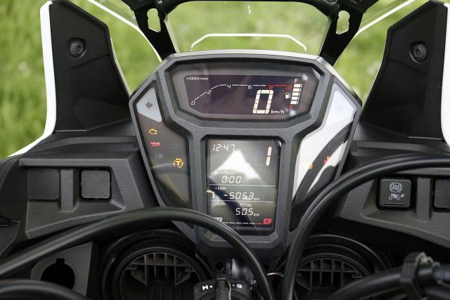 Dočekala nas je “trikolore” verzija, a o ponudi boja još su i “CRF reli” crvena, siva i crna. Odmah nam se dopalo što nova “afrika” dizajnom vrlo podseća na onu sa kraja 20. veka. Naravno materijali su novi, kvalitetniji, instrument tabla savremena, u skladu sa novom erom, ali osnovna ideja je ostala ista.