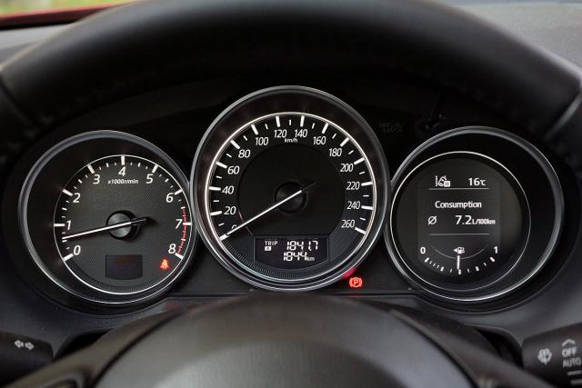Verovali ili ne, uspeli smo da dostignemo deklarisanu potrošnju po gradu od 7,5 l/100 km. U proseku, oko pola litra je manja u odnosu na SUV CX-5 sa istim motorom. Koliko smo kod ovog automobila uživali u visokoj poziciji vozača, isto toliko smo sa velikim zadovoljstvom ulazili u svaku krivinu sa "šesticom".