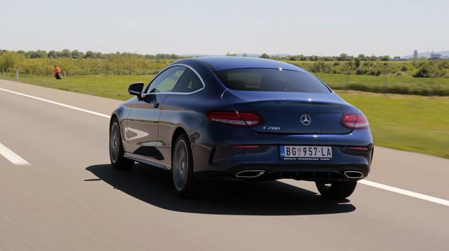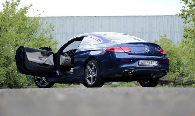Strategija menadžmenta Mercedesa očigledno je bila da učini da se kupci C klase kupe osećaju kao da voze najmanje tri puta skuplji auto u odnosu na stvarnu cenu. I stvarno je tako. Dok je prethodna generacija izgledala gotovo identično limuzini, samo sa 2 umesto 4 vrata, nova ima potpuno drugačiji izgled, ne samo maestralno dizajniranog zadnjeg već i prednjeg dela. Prednja maska je drugačija u odnosu na limuzinu, ali ono što nas je kupilo, kao i većinu, je zadnji kraj.
