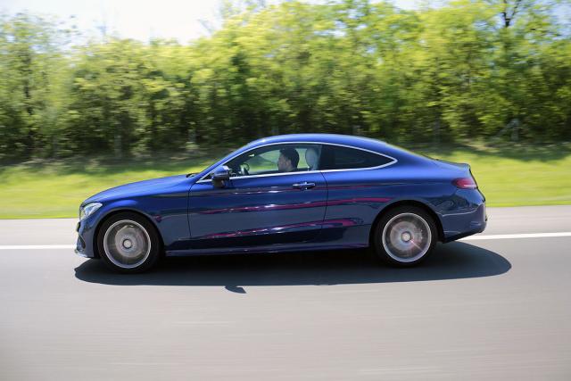 U C 200 se ugrađuje najslabija verzija sa 184 KS, dok je za C 250 i C 300 ovaj motor pojačan na 211, odnosno 245 "konja". U odnosu na limuzinu C klase, kupe je dobio za 15 milimetara niže oslanjanje, što je direktno uticalo na dinamiku vožnje. Ogibljenje je istovremeno tvrdo ali ima i dug hod, pa tako ume i da zapliva u stilu limuzine preko dugih neravnina na autoputu. To nikako ne znači da je auto nestabilan, naprotiv.