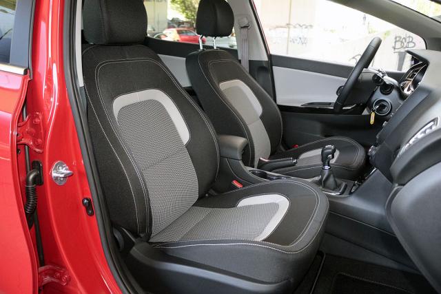 Dopalo nam se što je kompletna površina tapacirunga u vratima i gornjeg dela komandne table obložena mekanom plastikom prijatne teksture kakvu nismo videli ni u jednom drugom automobilu iz klase. Takođe, u Style paketu, tapacirunzi na vratima su obloženi atraktivno proštepanom eko-kožom, što svakako pravi razliku u odnosu na mnoge slične automobile koji na tom mestu imaju ili tvrdu plastiku, ili eventualno komad tkanine. Tkanina na sedištima je crno-siva, osvežena komadima eko-kože svetle nijanse, iste kao na vratima.