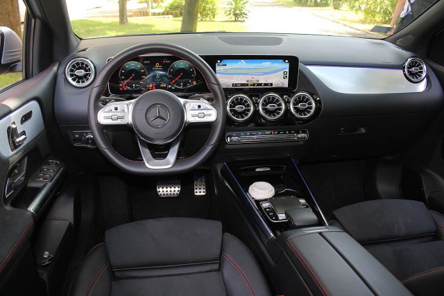 Sličnosti sa A klasom su brojne; na primer, komandna tabla je skoro identična, uključujući i čuveni MBUX (Mercedes-Benz User Experience) multimedijalni sistem.