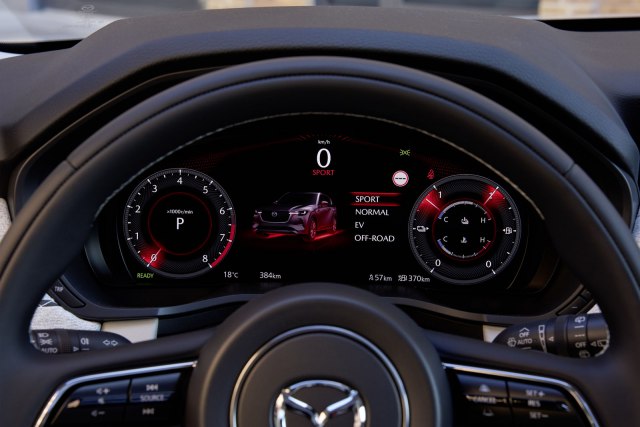 Ono što je Mazda spremila za kratku novinarsku probu je CX-60 sa plag-in hibridnom kombinacijom atmosferskog benzinca zapremine 2.5 litra sa 191 KS i elektromotora sa 175 KS.