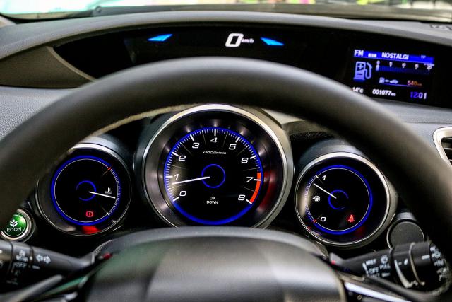 Instrumenti su kao i uvek zanimljivo postavljeni. Analogni obrtomer zauzima centralno mesto, pokazaće se – s razlogom. Stepenasto iza i iznad njih je digitalni brzinomer oko koga su indikatori štedljive vožnje. Naime, Civic ima "eko" mod koji se aktivira preko zelenog tastera smeštenog uz same instrumente.