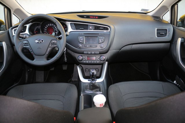 Rešenja u enterijeru su i dalje moderna, ali vidi se da je Ceed zreo za smenu generacija. O tome najviše svedoči mali, uski monohromatski displej na vrhu centralne konzole sa podacima o vremenu, datumu, temperaturi, pojasevima i otvorenim vratima koji je gotovo retro detalj.