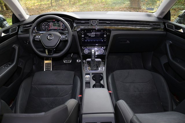 Elegancija se nastavlja i u unutrašnjosti. Komandna tabla je manje-više preuzeta iz Passata, a bogata oprema i ovde ostavlja utisak glamura.