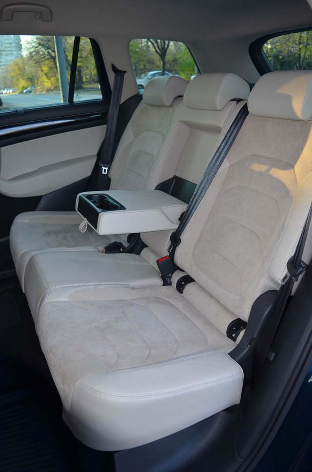 Zadnja klupa sa masivnim naslonom za ruke u središnjem delu pruža obilje prostora i zaista je fascinantno što u Kodiaq lako mogu udobno da se smeste i dvometraši.