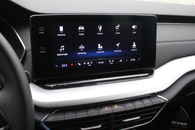 Međutim, najverovatnije iz razloga što smo koristili stari Android 7.1 telefon, sistem nije "povukao" kontakte i listu poziva, pa smo biranje morali da obavimo sa samog telefona, dok se prekidanje veze obavlja sa volana preko već pomenutog tastera za kretanje kroz meni.