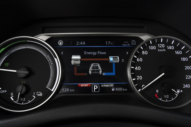 To znači da je pod haubom Nissanov atmosferski 1.6 benzinac sa četiri cilindra i 94 KS, kombinovan sa, takođe Nisanovim, elektromotorom u menjaču od 49 KS.