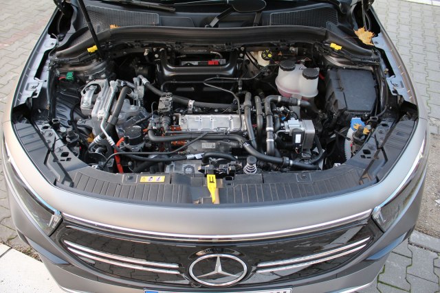 Kada otvorite haubu, na prvi pogled se uopšte ne vidi razlika u odnosu na GLA. Komponente elektromotora i menjač manje upućenima deluju kao klasični SUS motor.