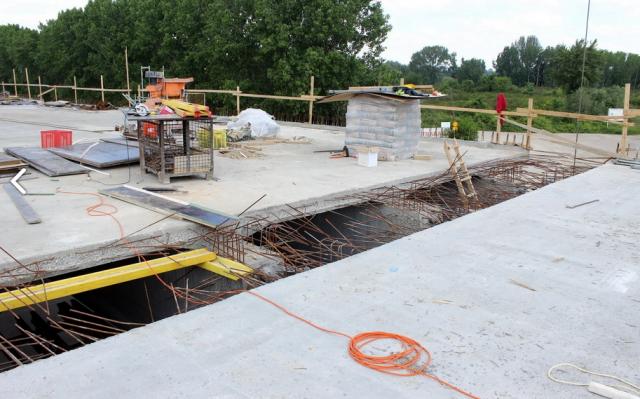 Na desnoj obali počelo je betoniranje gornjeg stroja prilazne konstrukcije, gde su izlivena prva tri polja preko starog Obrenovačkog puta. Do sada je ugrađeno oko 9.000m3 od ukupno ugovorenih 26.000m3 betona.