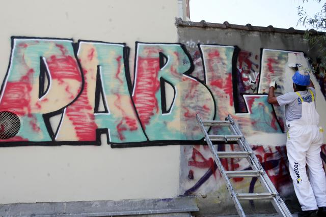 "Samo što je sređena fasada u Pop Lukinoj 12, odmah je naružena grafitima, to nas je šokiralo", izjavio je za Vesić, koji je obišao radove na uklanjanju grafita.