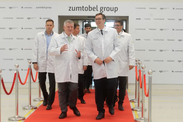 “Pre nekoliko dana sam rekao da je naša politika u jednoj oblasti poražena, ali ima jedna, koja ne može da se pobedi, a to je politika rezultata i činjenica, otvaranja fabrika", rekao je predsednik i zahvalio se vlasnicima Cumtobela što pomažu u kreiranju takve politike, sa kojom će, kako je podvukao, Srbija nastaviti.