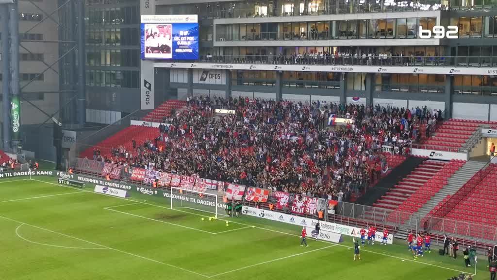 Oko 2.000 navijača Crvene zvezde bodri crveno-beli u revanš meču III kola kvalifikacija za Ligu šampiona protiv Kopenhagena na stadionu "Parken".