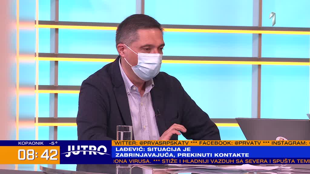 Prof. dr Nebojšu Lađevića je, gostujući u Jutarnjem programu TV Prve rekao da je potreban prekid svih kontakata. Upitan da li to znači da se i on zalaže za potpuno zatvaranje, poput dr Predraga Kona i dr Branislava Tiodorovića, on je rekao da je saglasan s njihovim stavovima da je neki prekid kontakata neophodan.