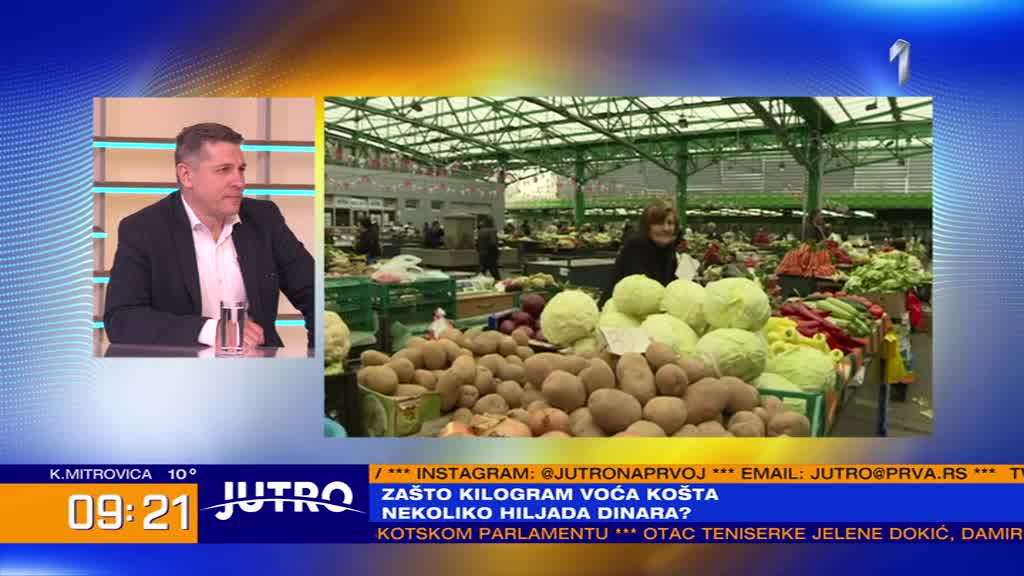 U jednoj beogradskoj piljari pojavile su se trešnje iz Čilea koje su koštale čak 4 300 dinara po kilogramu. One su uklonjene, ali su nam na tezge stigle iz Španije čija cena takođe ima tri nule. Da li ćemo se ovog leta sa pijaca vraćati praznih cegera, ali i novčanika? Gde su naši domaći proizvodi? Gost Televizije Prva tim povodom bio je Predrag Mitrović, Predsednik Udruženja "Zaštitnik preduzetnika i privrednika".