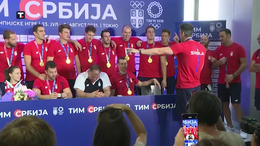 Zlatni vaterpolisti Srbije zapevali su "A sad, adio!" na pres konferenciji po povratku iz Tokija u Beograd.