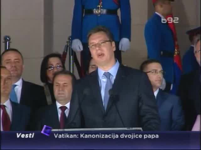 Aleksandar Vučić pošto je izabran za premijera obratio se građanima ispred Skupštine Srbije gde se okupilo oko 10.000 građana koji su došli iz