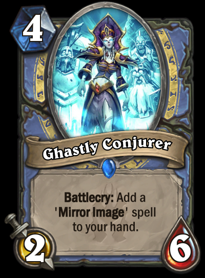 Čak 6 Health i 2 Attack garantuju da će karta uspeti da trejduje par puta protiv agresivnog špila pre nego što umre, što je sasvim ok. Čistiće Toteme, Token minione, male 1 i 2 dropove…Naravno, prava snaga kod Ghastly Conjurer je što nam daje jedan primerak karte Mirror Image.