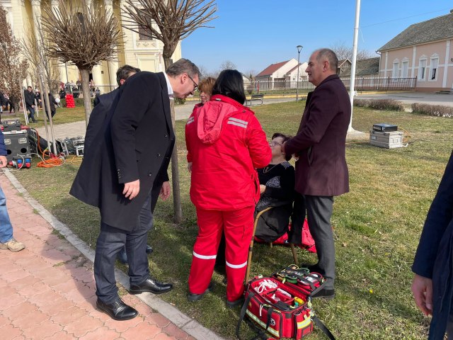 U jednom trenutku je pozlilo gospođi koja je prisustvovala skupu, na šta je Vučić odmah reagovao.