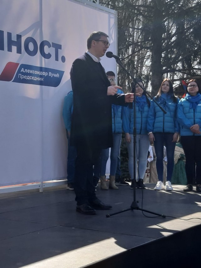 "Vidim mnogo roditelja sa decom. Ovi izbori su pitanje šta ćemo ostaviti našoj deci. Da izbegnemo sukobe i mlade ljude naučimo odgovornosti. Ja neću držati zapaljive govore o političkim protivnicima. Njihova dela govore za njih, a o nama govori sve što smo uradili. Sami vidite ko čuva stabilnost i mir. Izbori nisu igra, niti je država igračka", poručio je predsednik.