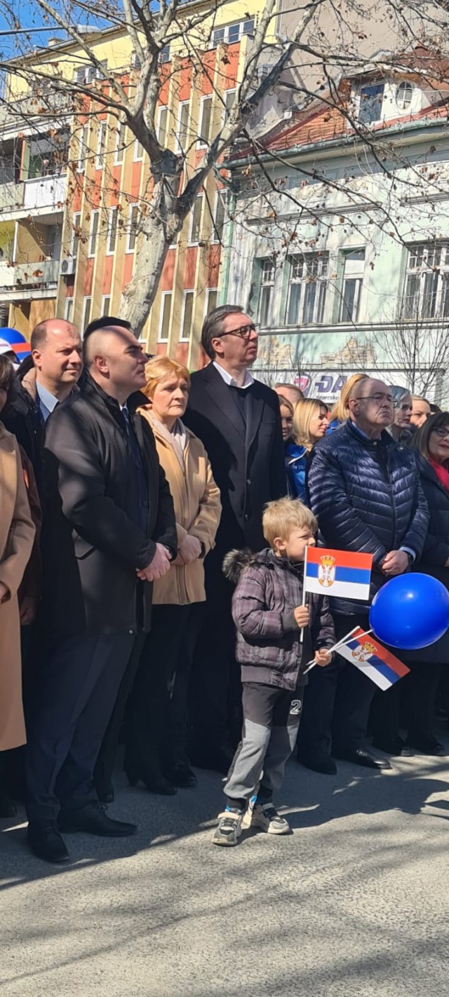 Predsednik Srbije Aleksandar Vučić na početku se zahvalio građanima koji su ga dočekali u velikom broju i zamolio sve da spuste zastave kako bi mogao da vidi ljude.