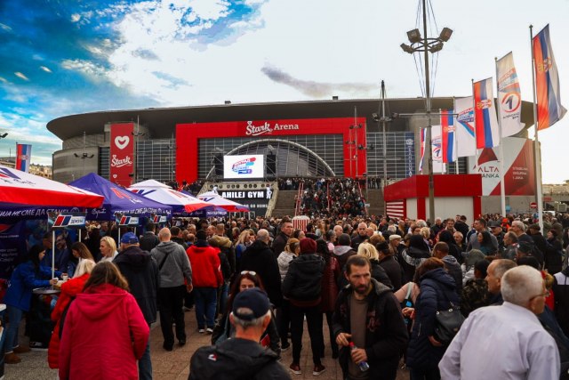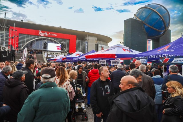 Ispred Arene već su se stvorile velike gužve, okupljaju se građani koji žele da čuju obraćanje Vučića i podrže njegovu politiku.