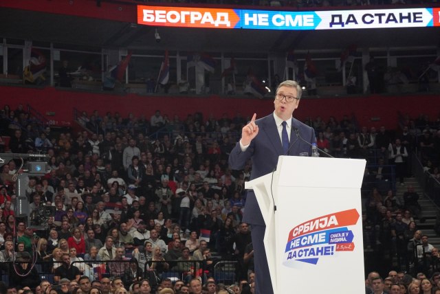 Građanima se obratio Aleksandar Vučić koji je ispraćen na binu gromoglasnim aplauzom i povicima "Aco Srbine".
