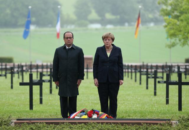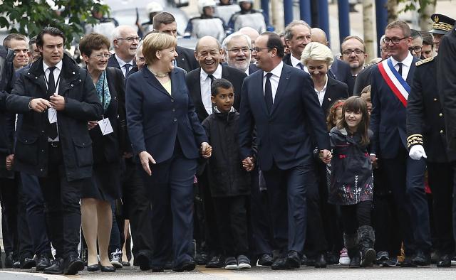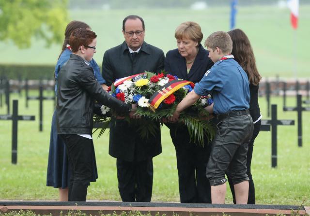 Francuski predsednik Fransoa Oland i nemačka kancelarka Angela Merkel predvodili su zajedničke ceremonije obeležavanja 100 godina od Verdenske bitke.