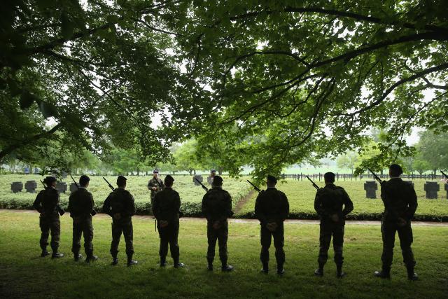 Komemoracija je počela sa 45 minuta zakašnjenja zbog kiše, a dvoje lidera došlo je automobilom umesto helikopterom. Posle polaganja venaca zajedn sa francuskom i nemačkom decom, Merkelova i Oland su obišli groblje na kojem je sahranjeno 11.148 nemačkih vojnika.