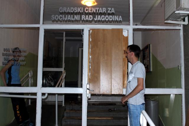 Domar u Centru Aleksandar Milosavljević, koji umesto stakla postavlja daske na vrata, izjavio je Tanjugu, da je u vreme razbijanja stakla u zgradi bila radnica koja brine o higijeni, koja od straha nije smela da zove policiju.