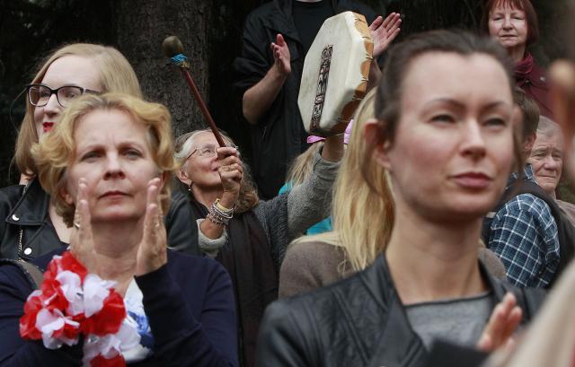 Na skupu, u subotu, koji je organizovala koalicija "Spasimo žene", demonstranti su mahali crnim zastavama i transparentima sa porukama "Zaustavimo fanatike na vlasti" i "Potrebni su nam lekari, a ne policija".