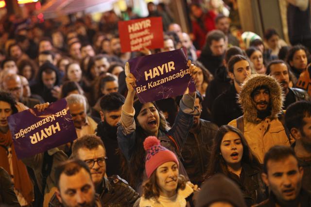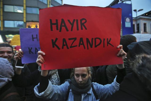 Više stotine ljudi izašlo je na ulice Istanbula protestujući zbog tesne pobede opcije turskog predsednika Redžepa Tajipa Erdogana na referendumu.