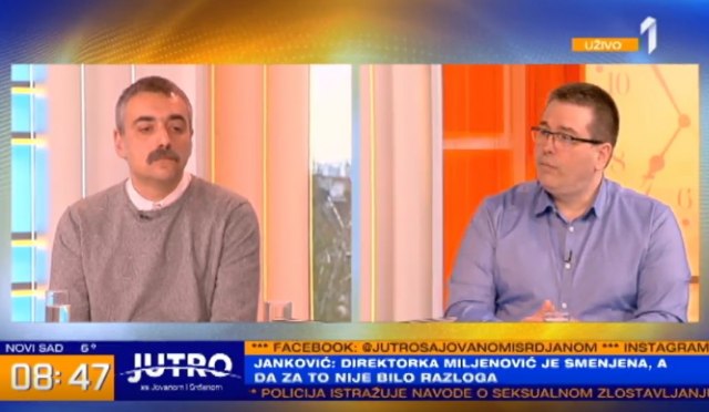 Zašto u kolektivu preovladava mišljenje da smenjena direktorka zaslužuje funkciju, čime je opravdala poverenje nastavnika i roditelja, kakve pritužbe na njen rad ima prvi čovek Školskog odbora, o tome u Jutarnjem programu TV Prve govore Zdravko Janković, jedan od roditelja i Željko Babić, predsednik Školskog odbora.Ovo je arhivirana verzija originalne stranice. Izvinjavamo se ukoliko, usled tehničkih ograničenja, stranica i njen sadržaj ne odgovaraju originalnoj verziji.