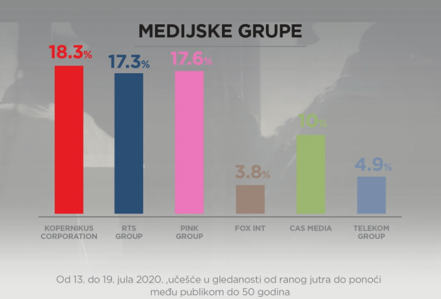 Kopernikus je nagledanija medijska grupa od ranog jutra do ponoći sa auditorijumom od blizu pet miliona gledalaca do 50 godina.