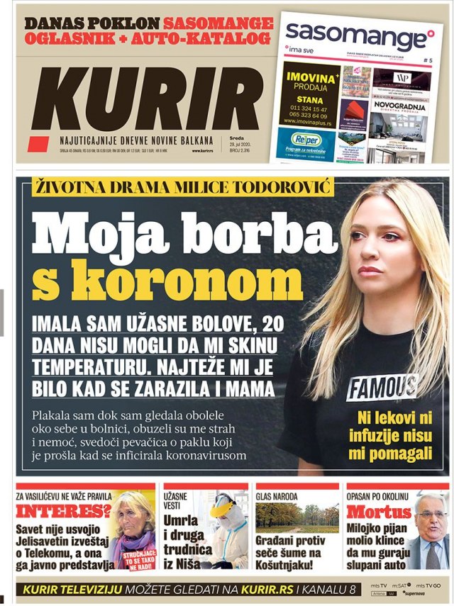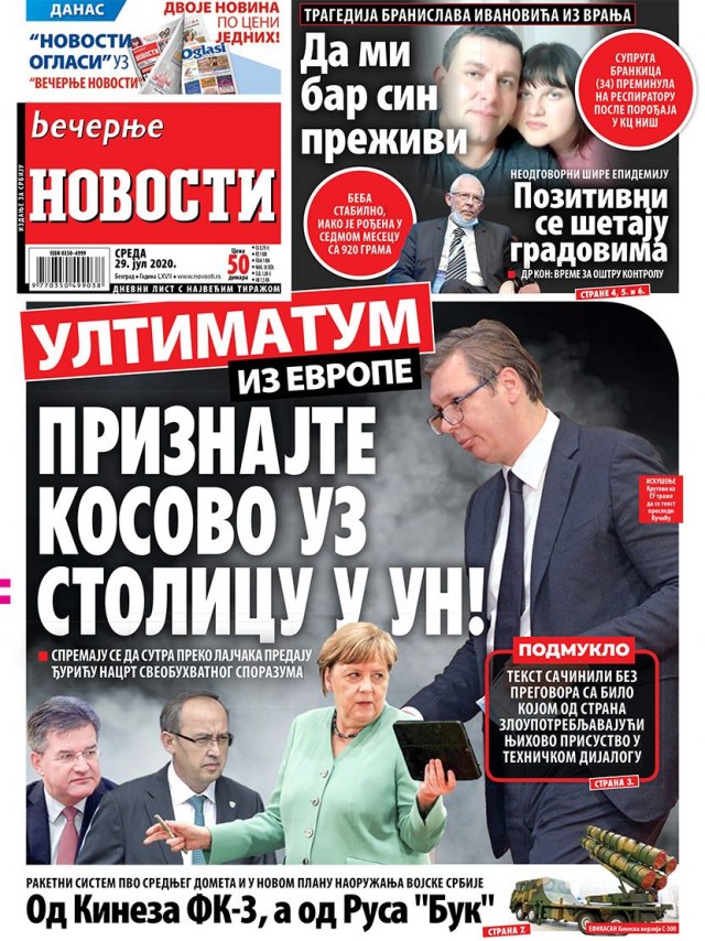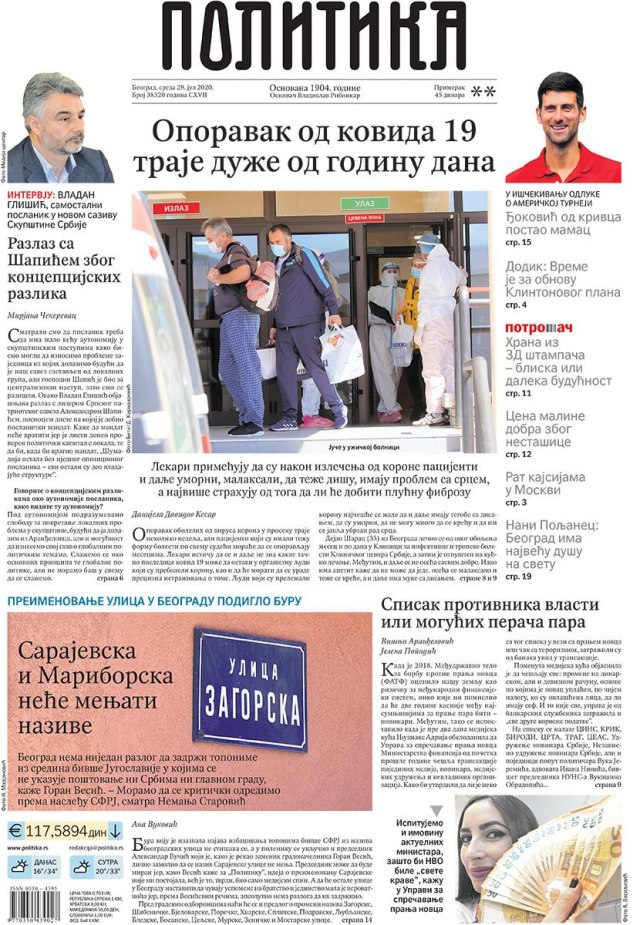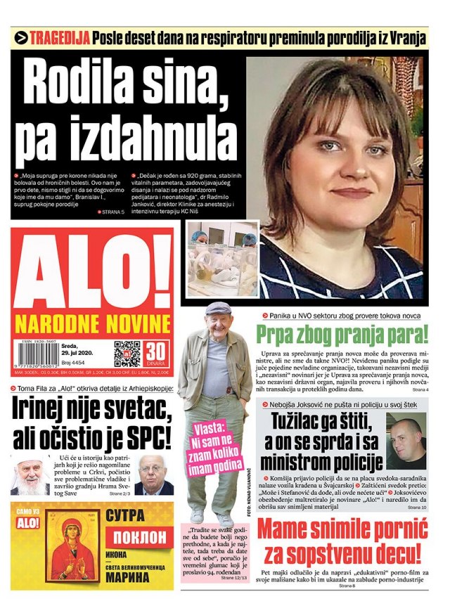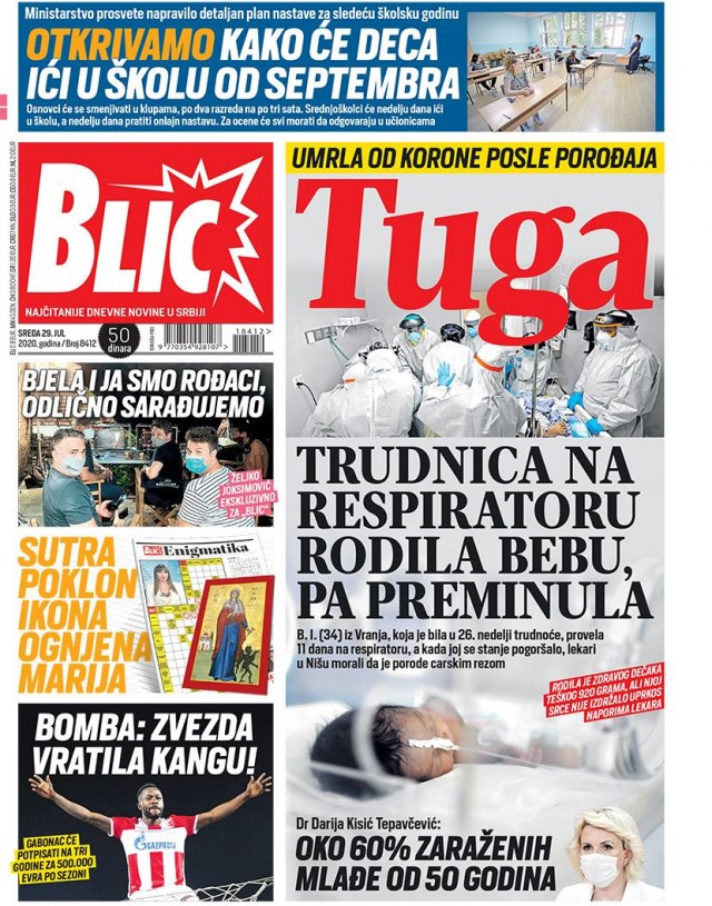 Dnevne novine u izdanju od srede, 29. jula pišu o tragično preminuloj porodilji iz Vranja, ali i o najavljenoj promeni naziva ulica u Beogradu.