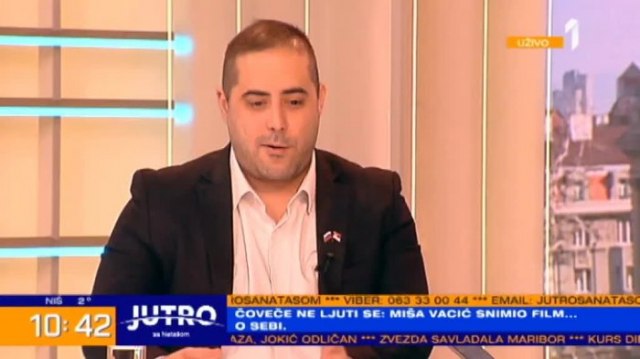 Predsednik Srpske desnice Miša Vacić upao je večeras na izložbu "Kapija - I kad boli, istina je lijek" u Centru za kulturnu dekontaminaciju.