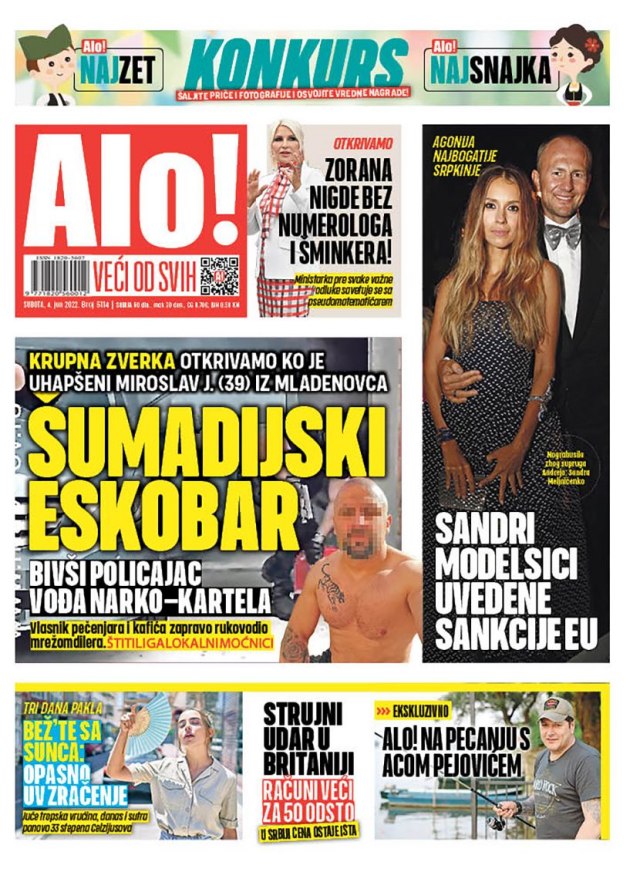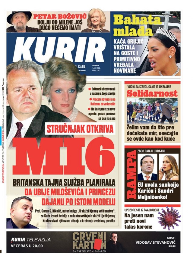 List "Kurir" bavio se pokušajem ubistva Miloševića i princeze Dajane: "MI6", dok "Alo" otkriva ko je uhapšeni Miroslav J. iz Mladenovca: "Šumadijski eskobar".