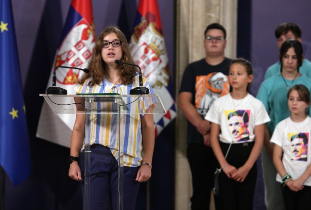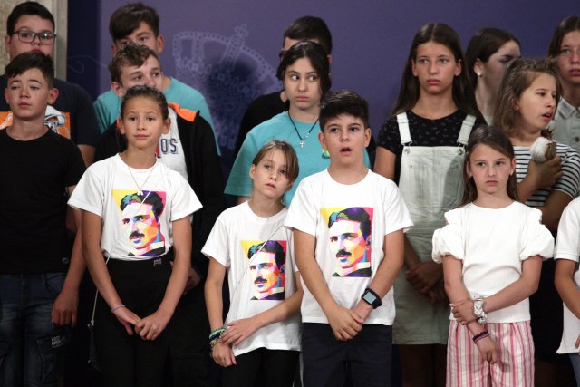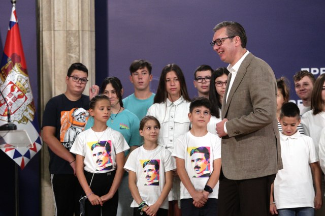 "Došlo je 34 dece iz regiona. Mnogo sam srećan što danas mogu da vas primim, i kada vas vidim sa majicama Nikole Tesle, znam koliko ste ponosni na Nikolu Teslu, koji je voleo i poštovao svoj narod. Srbija je uvek pribežište svakom čoveku. Državne granice koje danas postoje ne smeju da budu graničavajući faktor", rekao je Vučić.