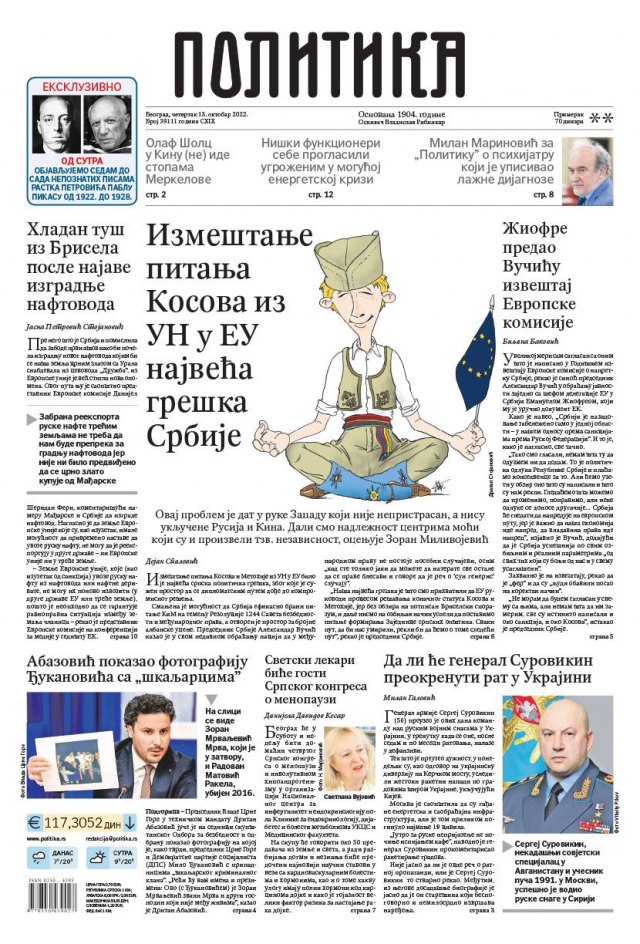 "Politika" piše o Kosovu i Metohiji: "Izmeštanje pitanja Kosova iz UN u EU je najveća greška Srbije".