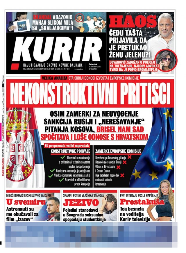 "Kurir" na naslovnoj strani donosi veliku analizu: "Šta Srbiji donosi izveštaj Evropske komisije".