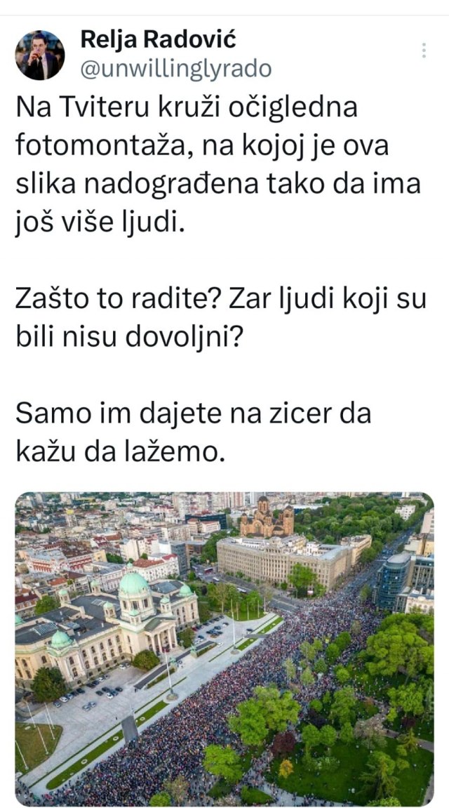 Nakon što je održan protest opozicije u Beogradu na društvenim mrežama primećeno je deljenje fotomontaža o broju okupljenih na tom skupu.