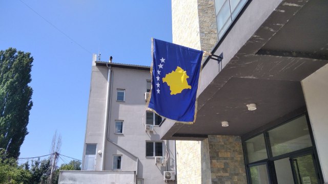 Nova zastava takozvanog Kosova, postavljena je iznad samih ulaznih vrata, dok je na dan polaganja zakletve novoizabranog gradonačelnika Severne Mitrovice Erdena Atića bila na terasi poslednjeg sprata.