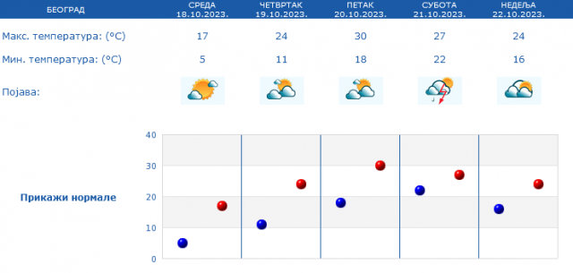 Sutra će u našoj zemlji biti jutro hladno, mestimično sa slabim prizemnim mrazom, uz minimalne temperature od 0 do sedam stepeni. Na jugu Srbije je najavljena kiša.