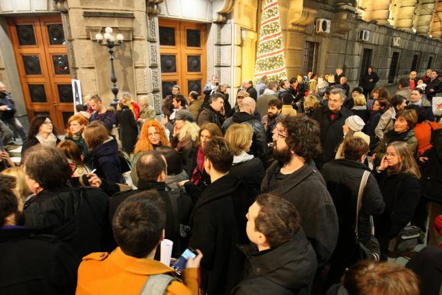 Oko 200 novinara, foto-reportera i građana okupilo se večeras u Beogradu ispred zgrade Vlade Srbije na protestu "Novinari ne kleče".